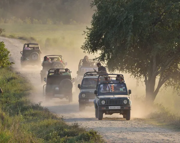 After that, take a thrilling Jeep Safari in another part of Kaziranga. It’s an adventurous ride where you can see animals up close, capture amazing photos and experience the jungle from a new angle.